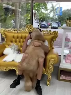 He’s always excited to see me after his bath. #doggrooming #doggroomer #goldendoodle #tutorial #HotwireHotelGoals