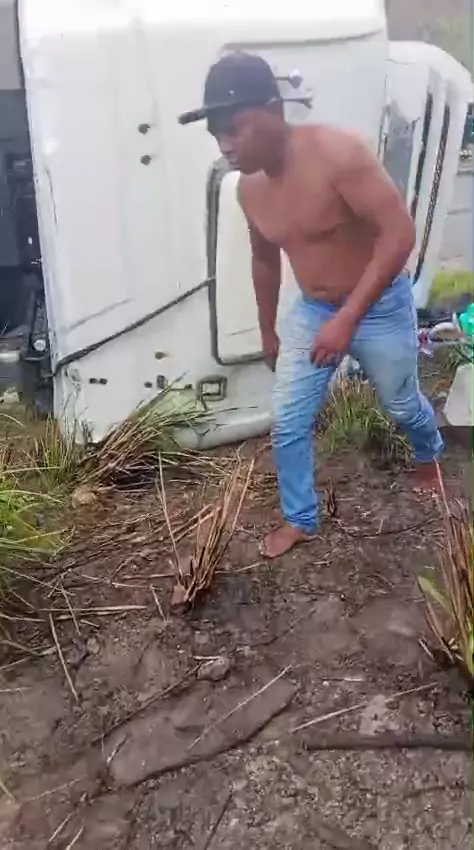 CAMINHÃO CARREGADO DE GAS TOMBA NA CURVA DOS MILAGRES E CARGA E SAQUEADA