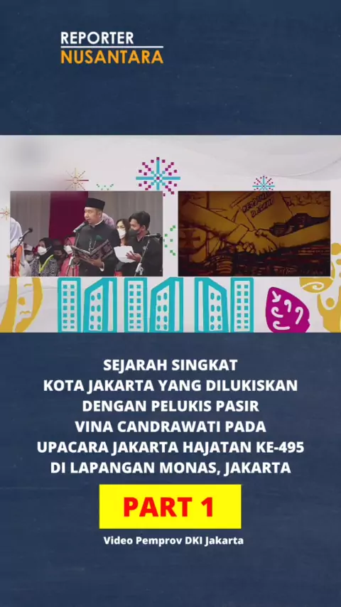 PART 1 | SEJARAH SINGKAT KOTA JAKARTA YANG DILUKISKAN DENGAN PELUKIS PASIR VINA CANDRAWATI PADA UPACARA JAKARTA HAJATAN KE-495 DI LAPANGAN MONAS, JAKARTA (22/6) #JakartaHajatan #HUTDKI495 #dkijakarta #KotaKolaborasi #JKT495