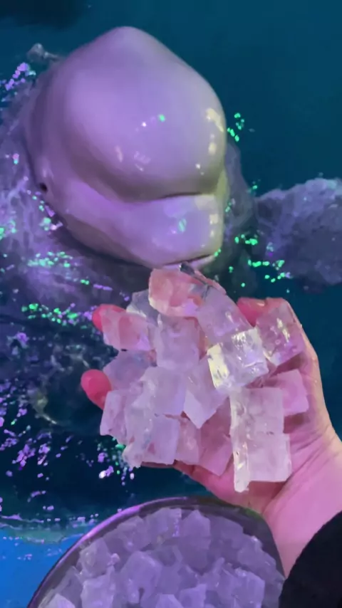 Agora é hora de comer # Como é fofo as baleias beluga comerem peixe.