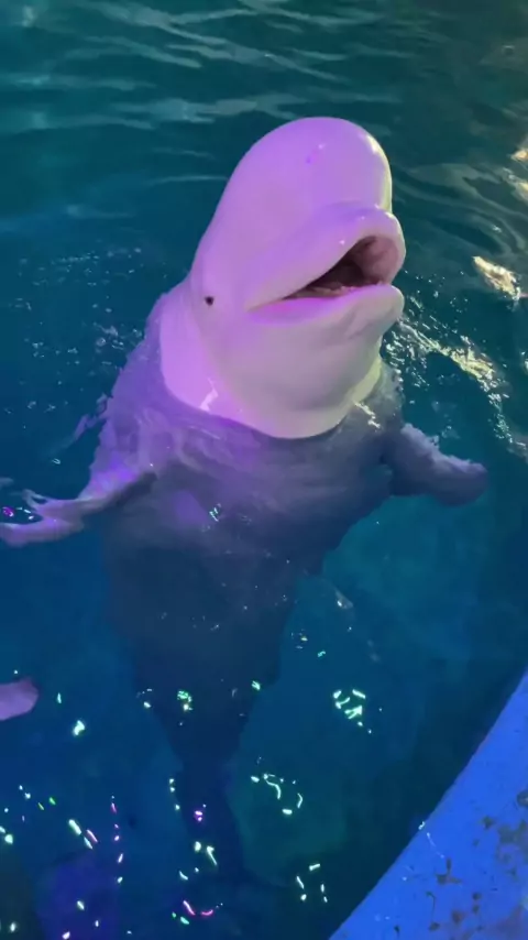 Coma alguns cubos de gelo # beluga Baleias comem gelo