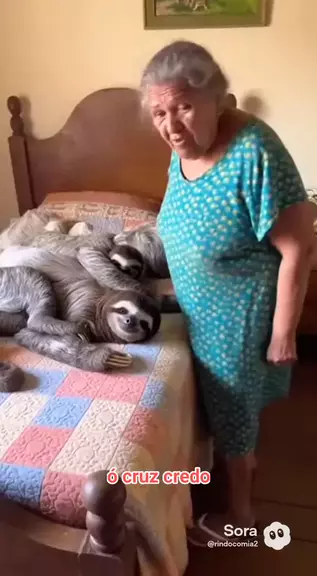A Família do bicho preguiça na cama da velha #chumor #bichopreguiça #ia #comédia #videoIA