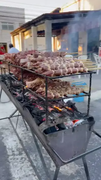 Olha essa churrasqueira 😍❤️🔥🔥👏 esfumaçando! Quem aí curte espetinho? #Comida #kwaifood #KwaiBrasil