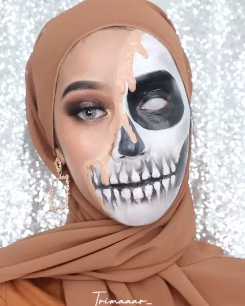 👩🏻x☠️ Detail product: • @makeoverid weightless foundation n30 • @purbasarimakeupid eyebrow • @makeoverid concealer • @pixycosmetics blush on • @fentybeauty highlighter • @makeoverid eyeshadow palette uptown bae • snarzoo face painting black & white • @wardahbeauty lightened liquid foundation • @dearmebeauty liquid eyeshadow # #makeuptransisi #newstyle #anastasiabeverlyhills #fentybeauty #jefreestarcosmetics #kylecosmetics #urbandecaycosmetics #morphebrushes #diormakeup #channelmakeup #...