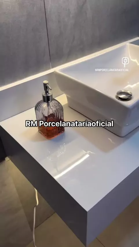 Três banheiros com bancadas em porcelanato e cubas de sobrepor, combinando elegância e funcionalidade em cada detalhe. Um verdadeiro espetáculo de design e sofisticação! #porcelanataria #Belem #brasil