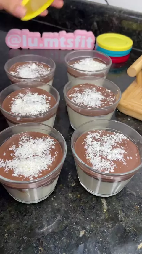 Olha essa opção de docinho fit para vocês!! Prestígio fit sem whey 🩷 Quer quiser o link dos potinhos é só pedir que eu envio.❤️❤️ creditos @lu.mtsfit #doce #sobremesa #viral #Receita #VIRALIZAR