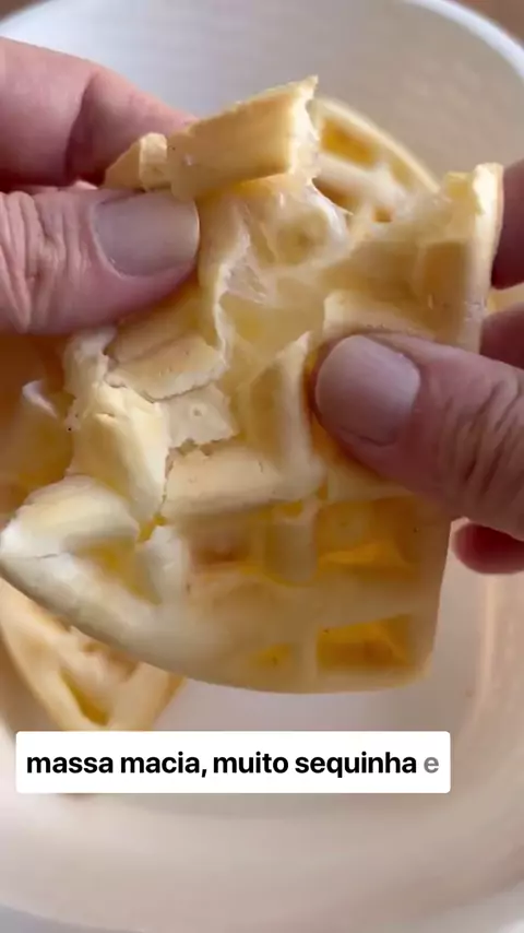 Waffle Pão de Queijo DELICIOSOOO 🧀 Massa mais líquida, waffle mais fino e levinho 👇 No liquidificador: ▫️ 80 gramas de queijo ralado 2 ovos ▫️1/3 de xíc de óleo ▫️1 xíc de leite ▫️Pitada de sal ▫️2 xícaras de polvilho doce ▫️Xícara de chá de 250 ml Se quiser a máquina de WAFFLES digite EU Quero que te envio no direct 🥰 créditos @coisasdanany #pãodequeijo #receitinhas #viral #achados #achadosshopee