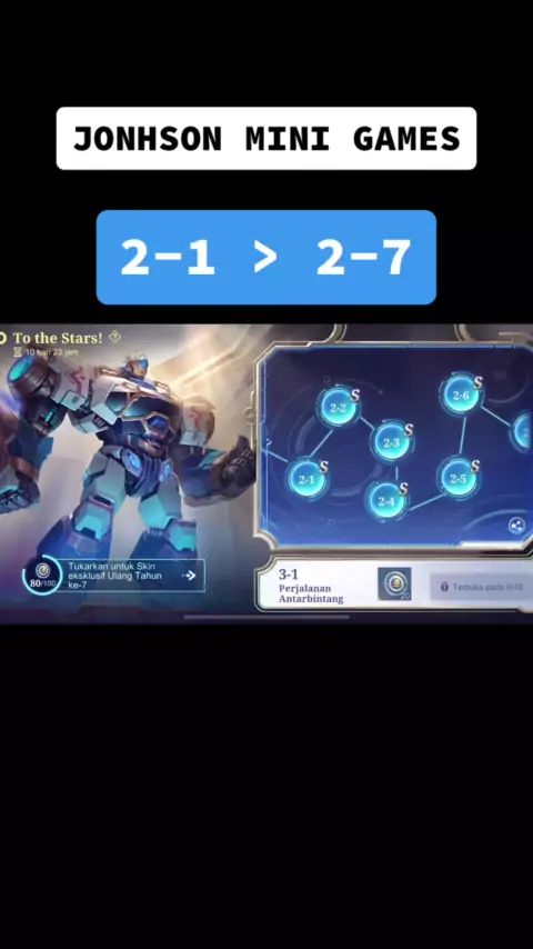 Tutoril Stage kedua mini games Jonhson (2-1 > 2-7) ! Semngat gaes buat dapatin skin gratis jonhson ๐ & jgn lupa klik logo mlbb ya๐ #PestaMLBB7thAnniv #nextforu #minigamesjohnson #skingratis #jonhson #mobilelegends_id #xtzymlbb #GamingOn @Mobile Legends Indonesia