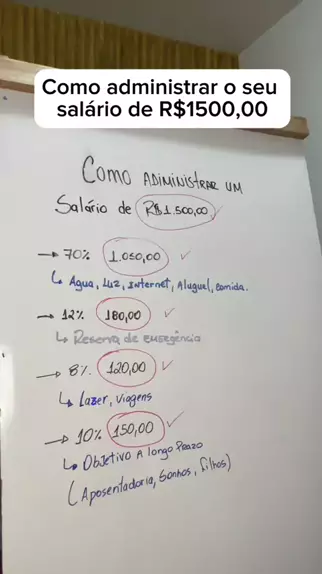 Como administrar o seu salário de 1500,00. Quer mais dicas como essa? Me segue aqui ! #financas #salario #investimento