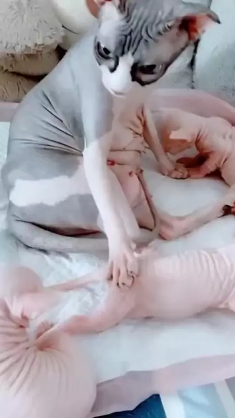 Gata Cuidando Dos Gatinhos.ππ