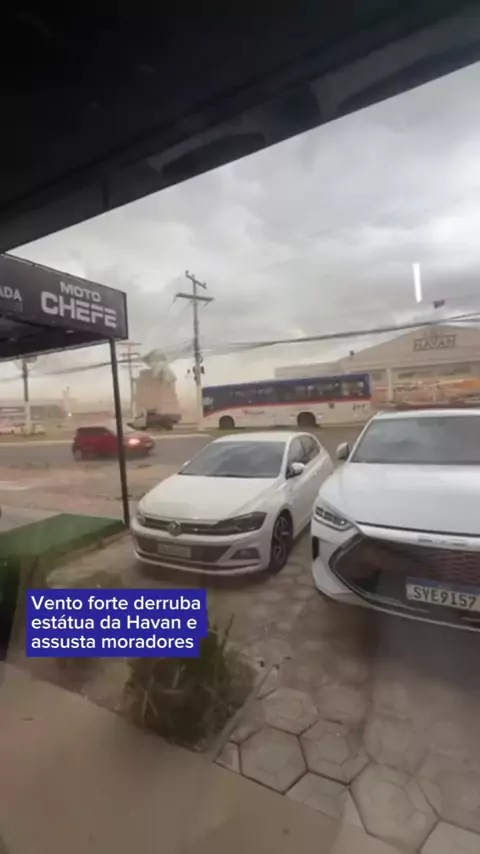 💨 Rajadas intensas de vento derrubaram a estátua da Havan no estacionamento da loja em Guaíba, no Rio Grande do Sul, na tarde desta segunda-feira. A estrutura cedeu durante o período de instabilidade climática que atinge a região Sul do país. Apesar do susto e dos danos materiais, ninguém ficou ferido. Imagens do local mostram a estátua caída no pátio, chamando a atenção de quem passava pela região. O episódio reforça o alerta para as condições do tempo no Sul, onde ventos fortes, chuva e te...