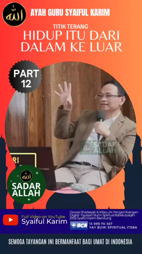 SA #12 : Titik Terang : Hidup itu dari Dalam Keluar oleh Ayah Guru Syaiful Karim https://www..com/@syaiful_karim?_t=8fo9buUZ0Z6&_r=1 Semoga kajian ini bermanfaat bagi masyarakat. Amin Sumber Video : Channel Syaiful Karim Venue: Mesjid Misykatul Anwar Jl Sentral No 43 Cibabat, Cimahi Executive Producer: Syaiful Karim Produser: Novriansyah Editor: MD Ruhanda #sadarallah #makrifat #allah #dakwah #kajian #syaifulkarim # #pikiran #ustad #ceramah #ngaji #kebahagiaan #sadar #m...