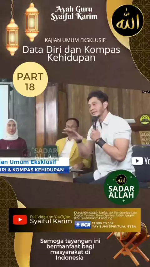 SA #18 : Kajian Eksklusif : Data Diri dan Kompas Kehidupan oleh Ayah Guru Syaiful Karim https://www..com/@syaiful_karim?_t=8fo9buUZ0Z6&_r=1 Semoga kajian ini bermanfaat bagi masyarakat. Amin Sumber Video : Channel Syaiful Karim Venue: Mesjid Misykatul Anwar Jl Sentral No 43 Cibabat, Cimahi Executive Producer: Syaiful Karim Produser: Novriansyah Editor: MD Ruhanda #sadarallah #makrifat #allah #dakwah #kajian #syaifulkarim # #pikiran #dakwah #ustad #ceramah #ngaji #kebaha...