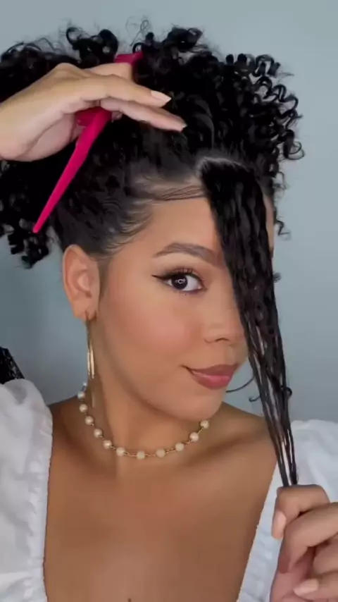 Amei 😍 📽️ @beatriz__macedoo #franja #cabelocurto #cabelos #cacheada #quintou