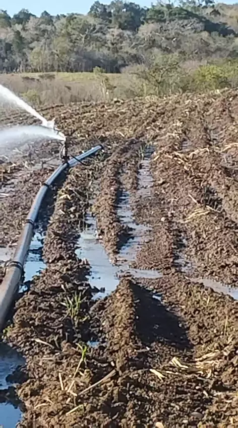 irrigação por aspersão no plantio de cana-de-açucar