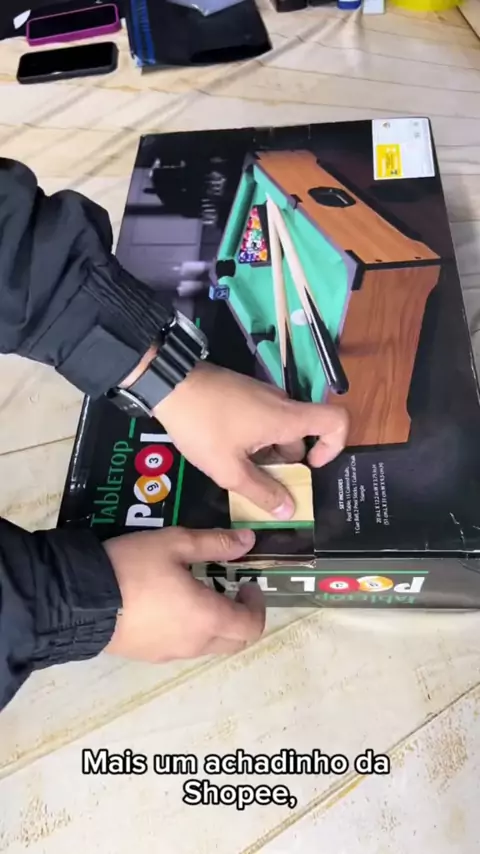 Kit Mini Mesa de Bilhar e Sinuca Completa 2 Tacos e Triangulo Portátil Snooker #Mesa #sinuca #brinquedo #diversao