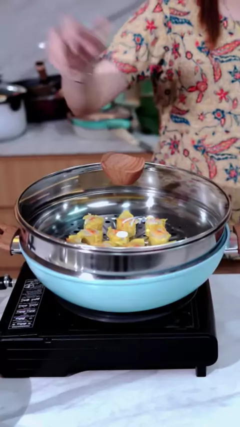 wokpan steamer 32 cm , wokpan anti lengket coating granite dengan pengukus full stainless steel, material penutup menggunakan kaca glass LID , produk original dari tifale. #wokpansteamer #wokpan #wokpanantilengket #wokpangranite #rekomendasiwokpan #tifale