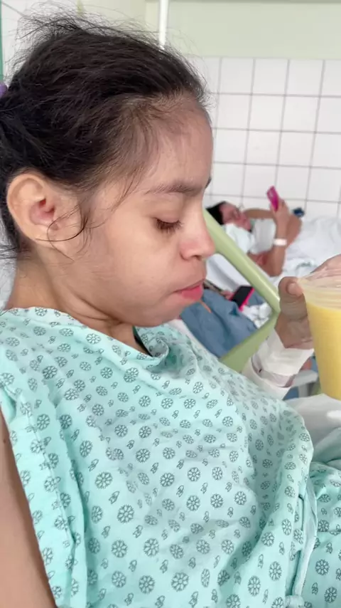 Sabrina já tomou banho e tá merendando