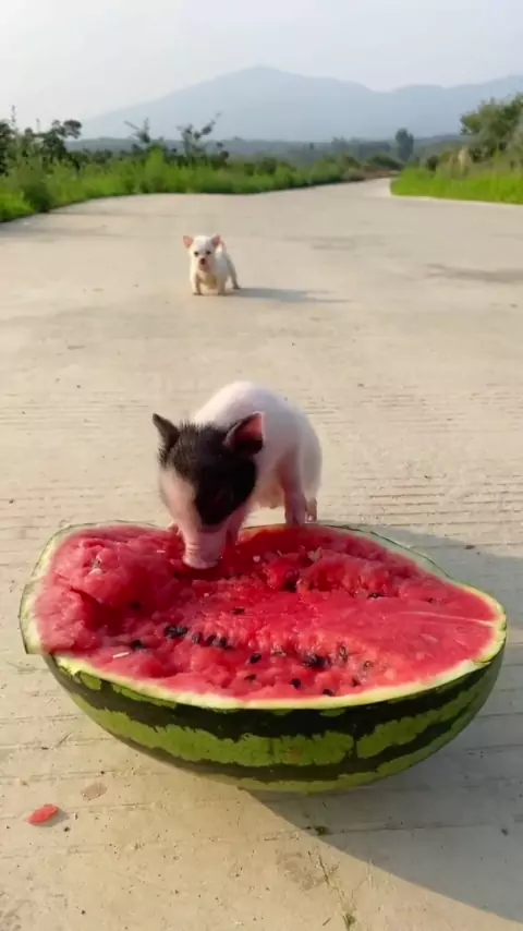 Porcos também têm que comer melancia no verão
