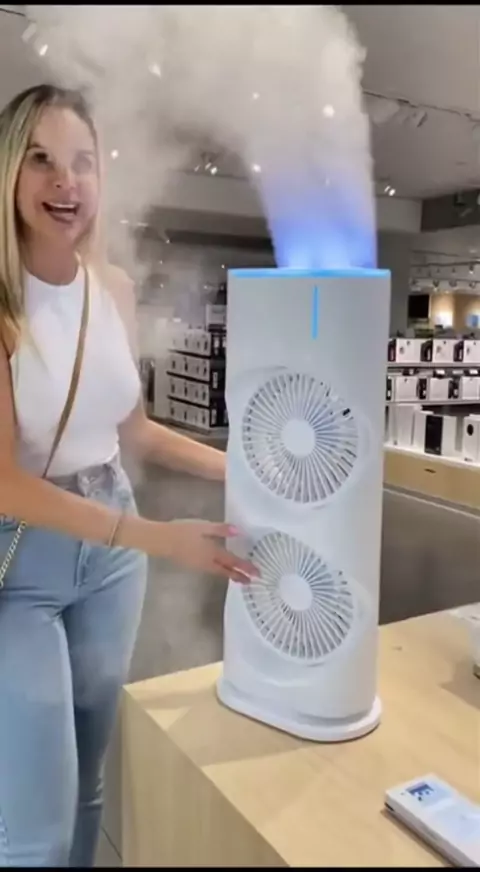 Dê uma olhada no Mini Refrigerador De Ar Ventilador Umidificador Dupla Giratório+rgb Climatizador Ar #climatizador #minirefrigerador #kwaishop #verão #Vem2026NoKwai