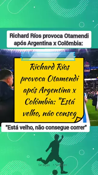 Richard Ríos provoca Otamendi após Argentina x Colômbia: "Está velho, não consegue correr"