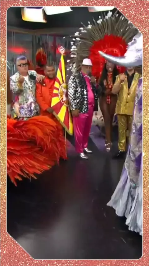 Integrantes da #TomMaior usam #fantasia de #Sol e #Lua durante #desfile em