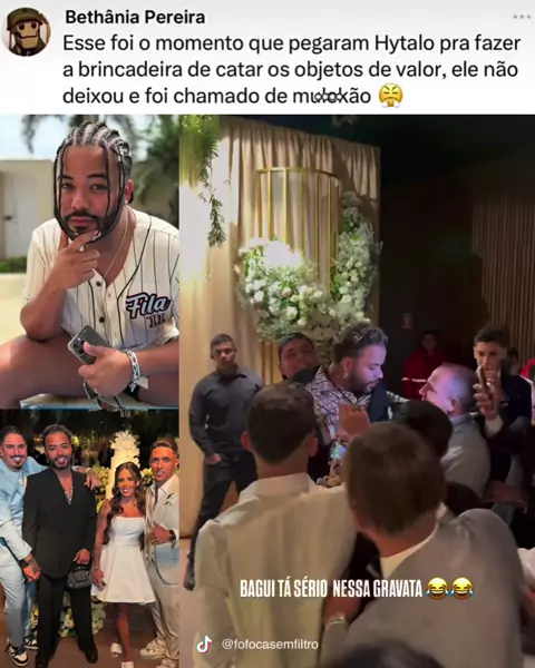 Esse foi momento em que Hytalo Santos foi abordado para participar da brincadeira da gravata no casamento de Buzeira. Para quem não acompanhou, o influenciador contou que teve uma crise de ans*edade durante a celebração, por não estar acostumado com esse tipo de brincadeira.😳📸 #hytalosantos #brincadeira #casamento #buzeira