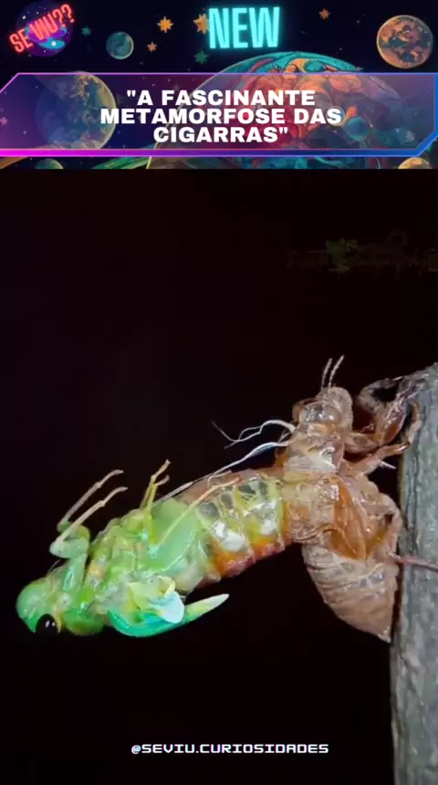 "Observe o incrível processo de metamorfose das cigarras. Uma transformação verdadeiramente surpreendente da natureza. 🪲🔍 #Cigarras #Metamorfose #NaturezaSurpreendente #OiTubeSkipAdsTube3 #sigodevolta