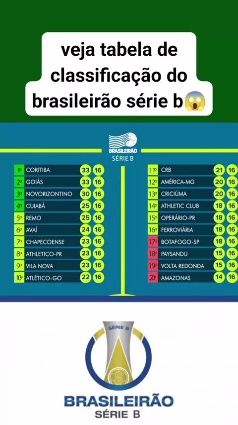 tabela de classificação da série b #tabeladeclassificaçao #brasileiraoserieb #esporteviral