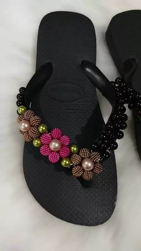 chinelo confortável preto com pérolas de Arapongas #chineloconforto #chinelocomperola #arapongaspr #chinelocustomizado