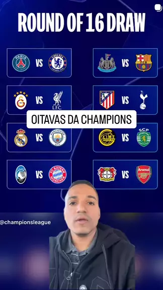 DEFINIDOS OS CONFRONTOS DE OITAVAS DE FINAL DA CHAMPIONS Qual a sua opinião, torcedor? Deixa aí nos comentários… E não esquece de me seguir, curtir o vídeo e compartilhar com os amigos! Me segue também no @StudioVix #Oitavas #Champions #Confrontos