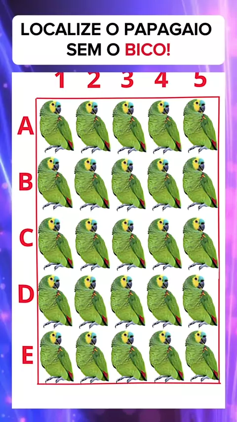 Seja rápido e encontre o papagaio sem o bico! #testedevisão #visão #testecognitivo #testepsicologico #psicotecnico