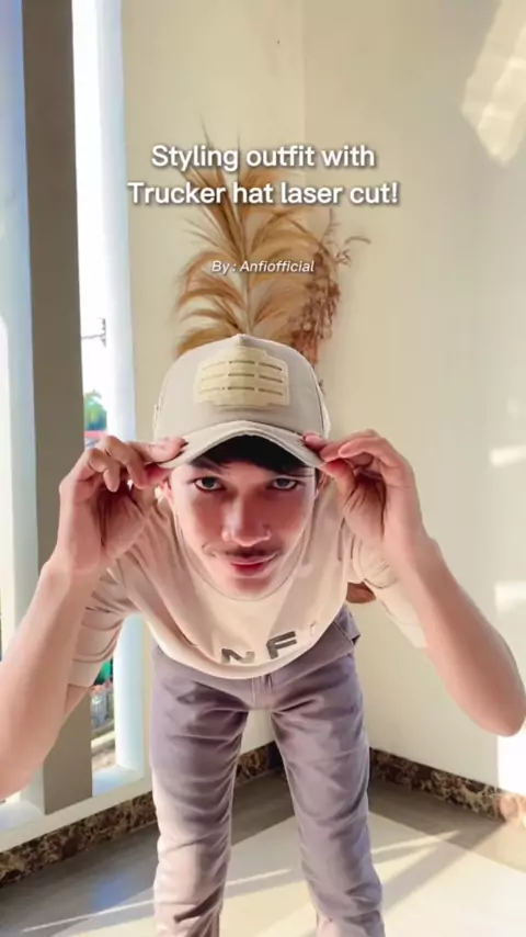 Styling with trucker hat tactical laser cut! — Kaos dari ANFI dan celana chinos panjang By : Anfiofficial #Anfiofficial #Outfit #rekomendasioutfit #topi #topitrucker #truckerhat #topitactical