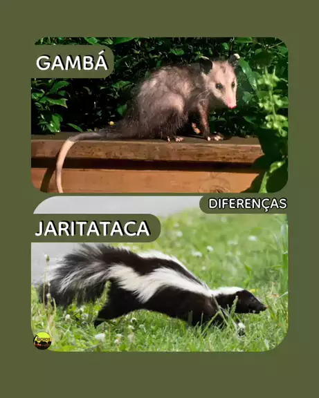 Sabia que eles tĂȘm muitas diferenças? âïž Tem um vĂdeo completo lĂĄ no nosso canal. Corre lĂĄ pra aprender todas as diferenças. #GambĂĄ #zorrilho #Jaritataca#sarue #cangambĂĄ
