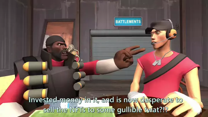 Parte 3 Scout tries to sell NFTs to Demoman. (15.ai. Gmod anim, with subtitles) #gmod #foryou #teamfortress2