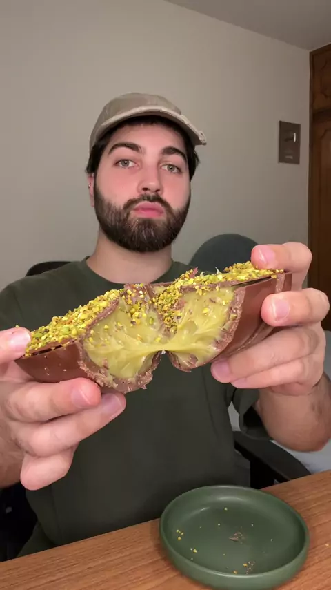 provando o ‘ovo de pistache’ da minha narradora favorita 🥹🩷