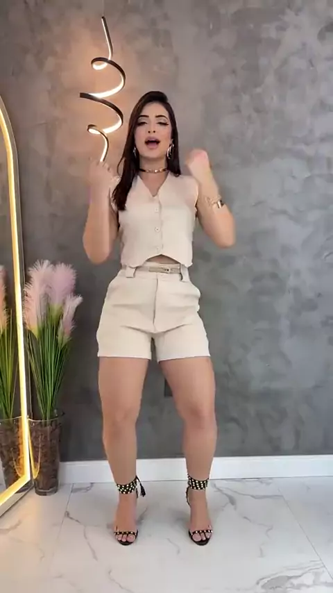 #SV Shorts de alfaiataria feminino elegante, com bolsos e cinto. #short #fyp #fouryou