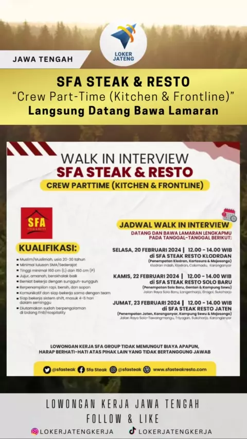 Lowongan Kerja Jawa Tengah Terbaru Posisi: Crew Part-Time (Kitchen & Frontline) Lokasi: Jawa Tengah#lokerkitchen#lokerfrontliner#lokerkitchencrew#lokercrew#lokerstorecrew#lokerparttime#lokersolo#lokersoloraya#lokersoloterbaru#lokerkaranganyar#lokersukoharjo#carikerja2024#lokerjateng#lokerjateng2024#lokerjawatengah#lowongankerja2024#lowongankerjajawatengah#lowongankerja#infoloker#infoloker2024#infolokerjateng#loker2024#lokersmasmk#lokersma#lokersmk#lokersmaterbaru#lokers1#lokerdiploma