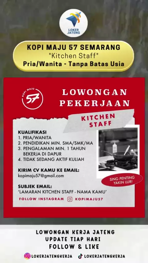 Lowongan Kerja Jawa Tengah Terbaru Posisi: Kitchen Staff Lokasi: Semarang#lokerkitchen#lokerkitchencrew#lokerstaff#lokercrew#lokercrewstore#lokersemarang#lokersemarang2023#lokersemarangsekitarnya#lokerjateng#lokerjateng2023#lokerjawatengah#lowongankerja2023#lowongankerjajawatengah#lowongankerja#infoloker#infoloker2023#loker#loker2023#lokersmasmk#lokersmaterbaru#lokers1