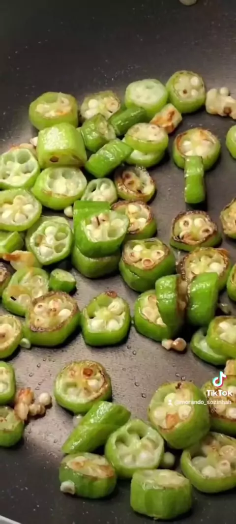 Quiabo frito 😋 ✨Ajuste o sal antes de servir ✨Ao fritar o quiabo ele não fica com aquela baba #receitassaudaveis #morandosozinha #quiabo #legumes #viralvideo