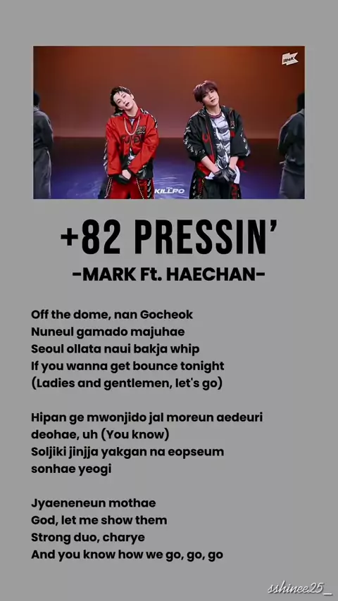 MARK ft. HAECHAN "+82 PRESSIN' " Lyrics π―π₯π― #marklee #haechan #nctzen #dreamzen #82pressin #kpop #lirik