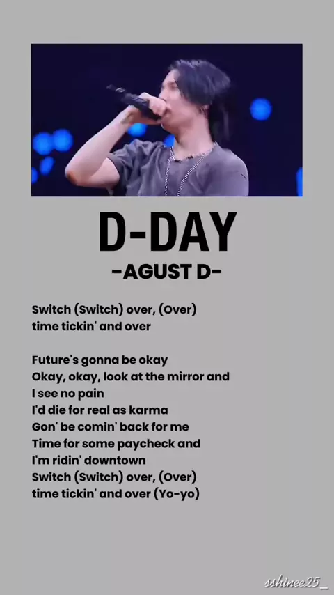 AGUST D "D-DAY" Lyrics π―π―π₯π₯ #agustd #suga #minyoongi #dday #army #kpop #lirik