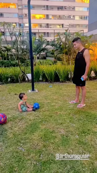 Temos um mini jogador de futebol? Temos sim! 🥹🤏🏻 Gab ama jogar bola e ontem foi dia de jogar com o papai Arthur Aguiar! ❤️⚽️ #ArthurAguiar #Baby #Gabriel #Fofura #Futebol