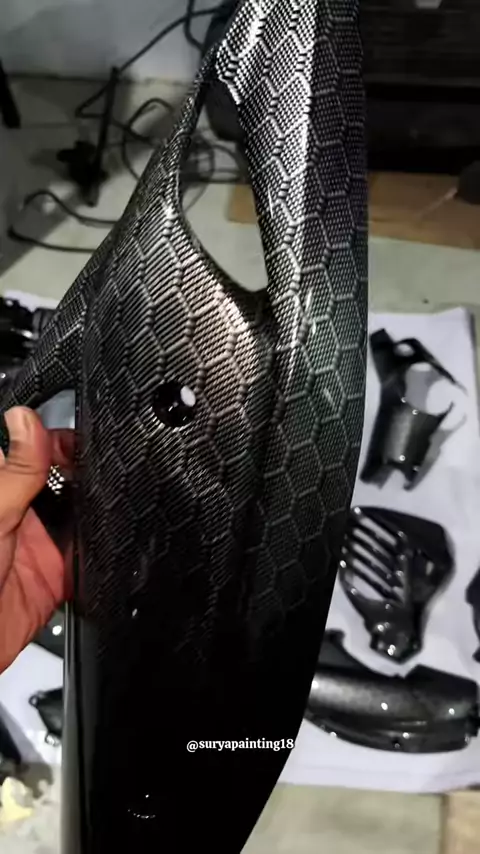 Karbon WTP body kasar bikin tampilan motor jadi makin racing look dan gampang di bersihin dan lebih awet di banding cat hitam doff biasa #suryapainting18 #otomotif #сѓисѓџ #wtpcarbon #carbonwtp