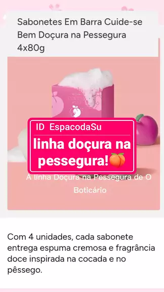 A linha Doçura na Pessegura de O Boticário traz uma fragrância envolvente e irresistível, combinando o dulçor do pêssego com a cremosidade do coco e um toque de baunilha. #boticario #vemprasu #jornadadabeleza #linhadoçurabessegura
