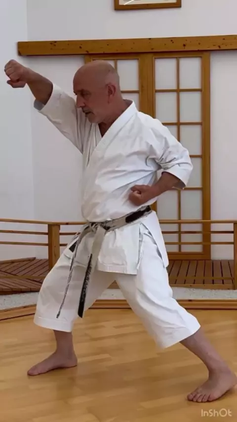 Zenkutsu Dachi, uma das bases fundamentais do Karate Shotokan; onde o peso é distribuído 70% na perna da frente e os outros 30% na perna de trás. #shotokan #karate #okinawa #FCK #CBK