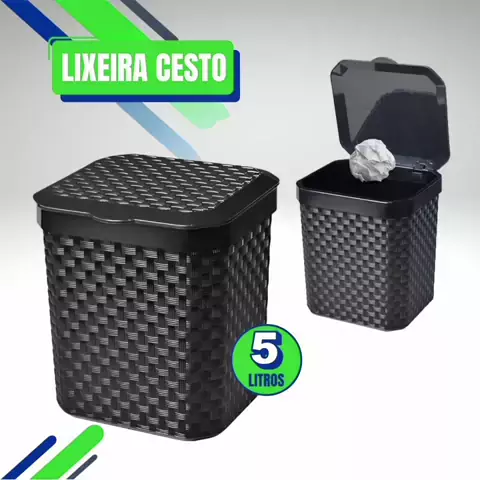Dê uma olhada em Lixeira Cesto Rattan 5 Litros Preta C Tampa Cozinha Banheiro Lixeira Pia por R$14,90. Compre na Shopee agora! https://s.shopee.com.br/70Fd9yn4VU #SHOPEE
