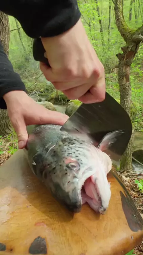 🔥🐟 Salmão fresco direto da selva! Isso não é só comida, é arte na natureza! Quem mais queria estar nessa fogueira agora? 🌲🍽️ #salmaonagrelha #comidananatureza #foodprimitive #ChefRaiz #viraldodia