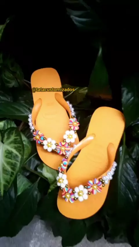 Foca nos DETALHES deste modelo tropical🌻 #havaianascustomizadas #havaianaspersonalizadas #chinelosdeluxo #chinelosdecorados #havaianas