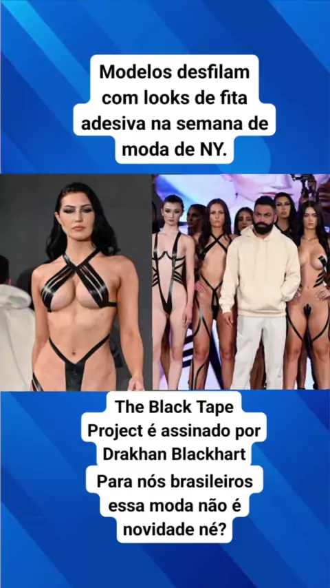 Modelos desfilam com looks de fita adesiva na semana de moda de NY. #Notícia #10kvisualizações #EstrelaDeFamília